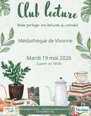 Le 19 mai Livre & Littérature Club lecture Médiathèque de Vivonne - 99 Grand Rue,86370 Vivonne (ouverture dans un nouvel onglet)